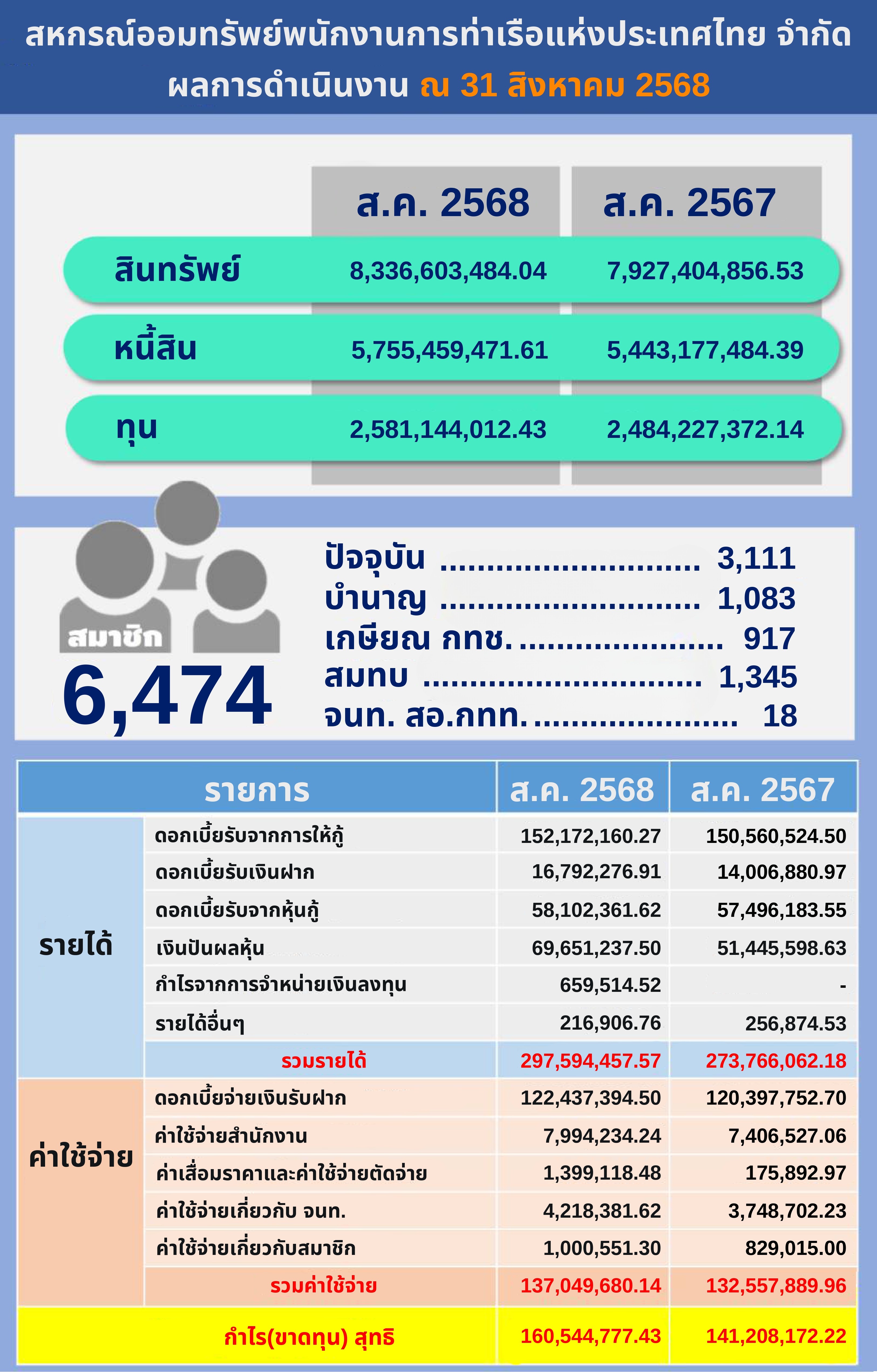 ผลการดำเนินการเดือนสิงหาคม 2568
